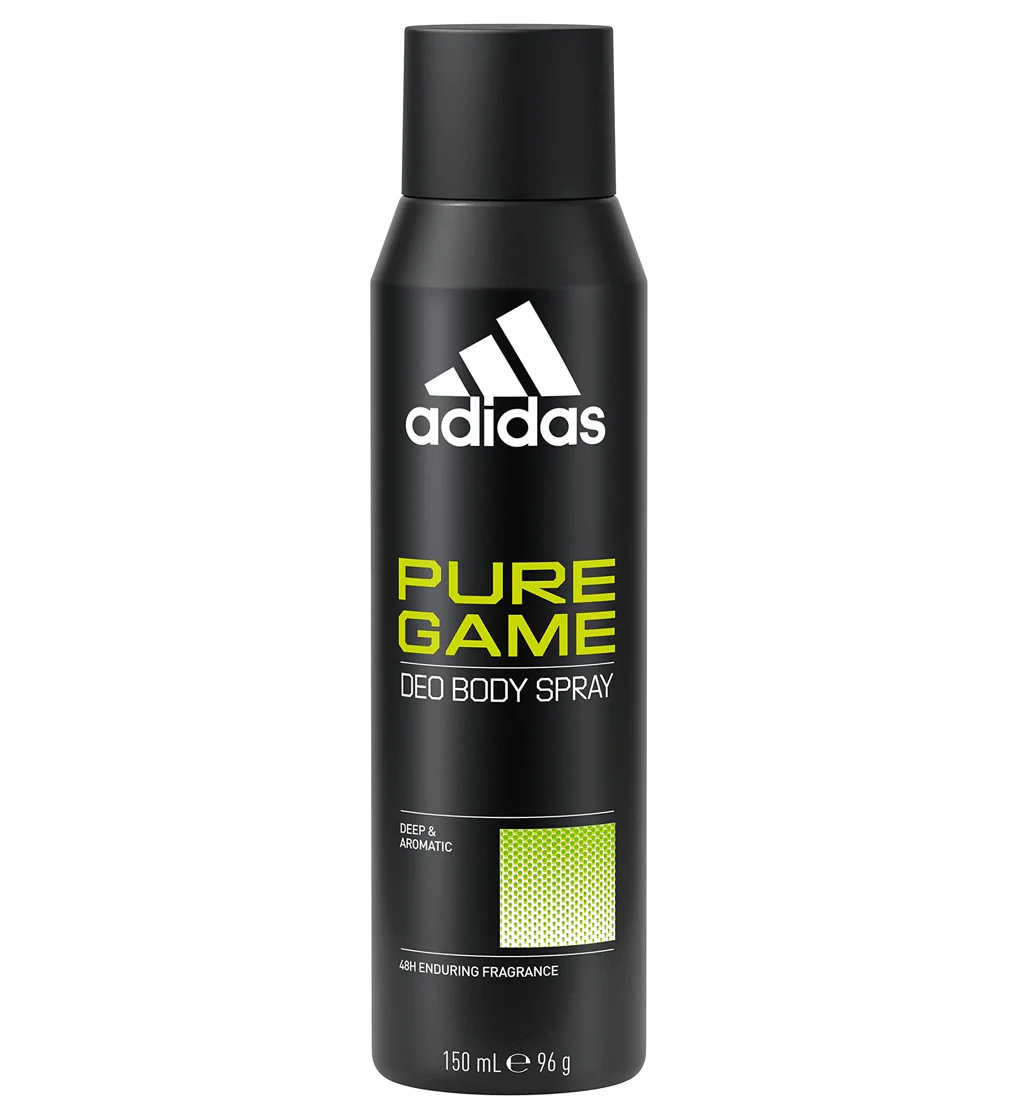 The Adidas Pure Game Deo Body Spray 48H represents freedom, audacity, confidence, and a sense of superiority, all in a convenient bottle. Its active formula effectively guards against unpleasant body odor and wet patches on clothing for up to 48 hours.