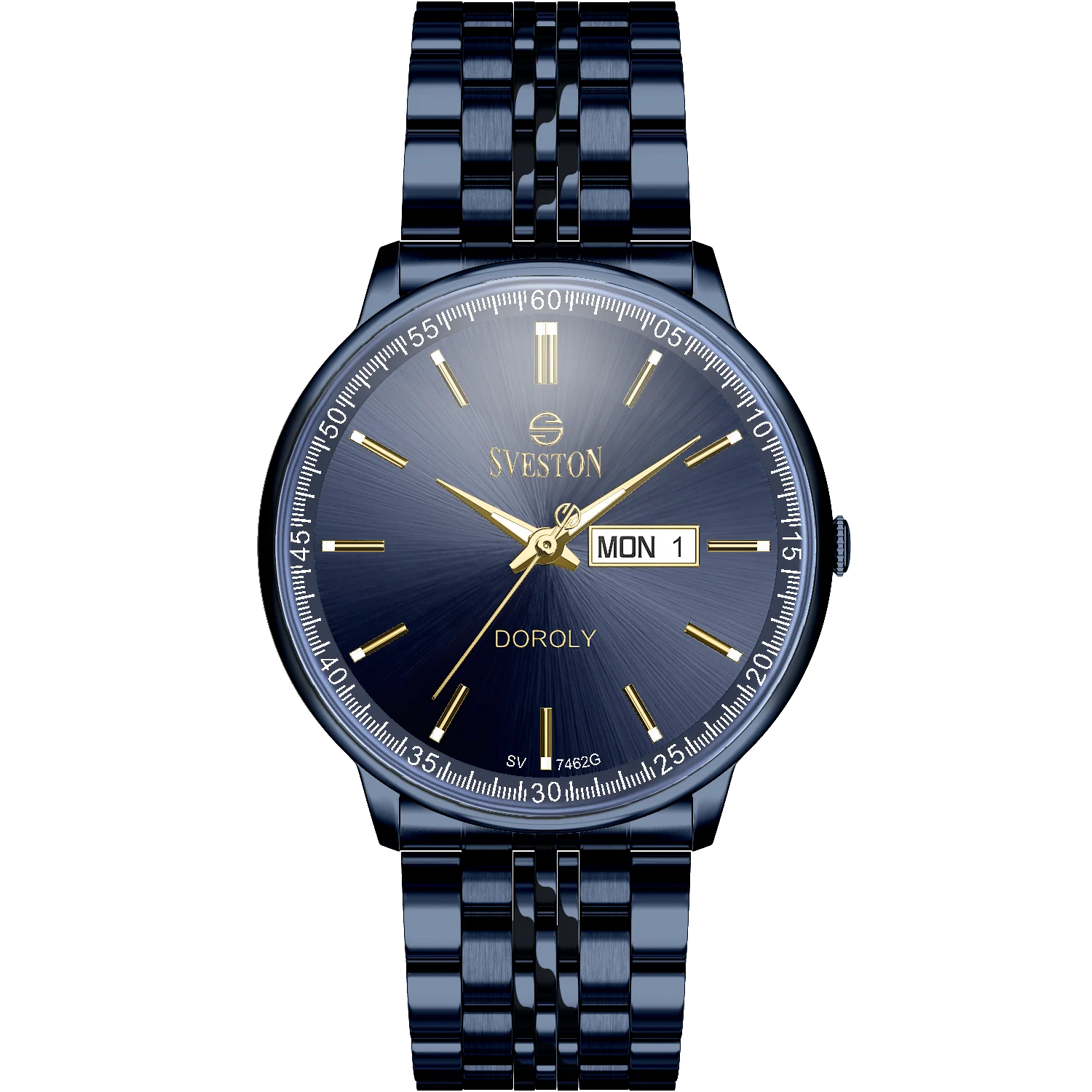 Experience timeless sophistication with the Sveston Doroly Black Watch. Designed with a sleek stainless steel strap and a bold black dial adorned with crystal hour markers, this watch blends elegance and durability. Featuring day and date display, precise Japanese movement, and a polished finish, it’s the perfect statement accessory for men who value both style and performance.