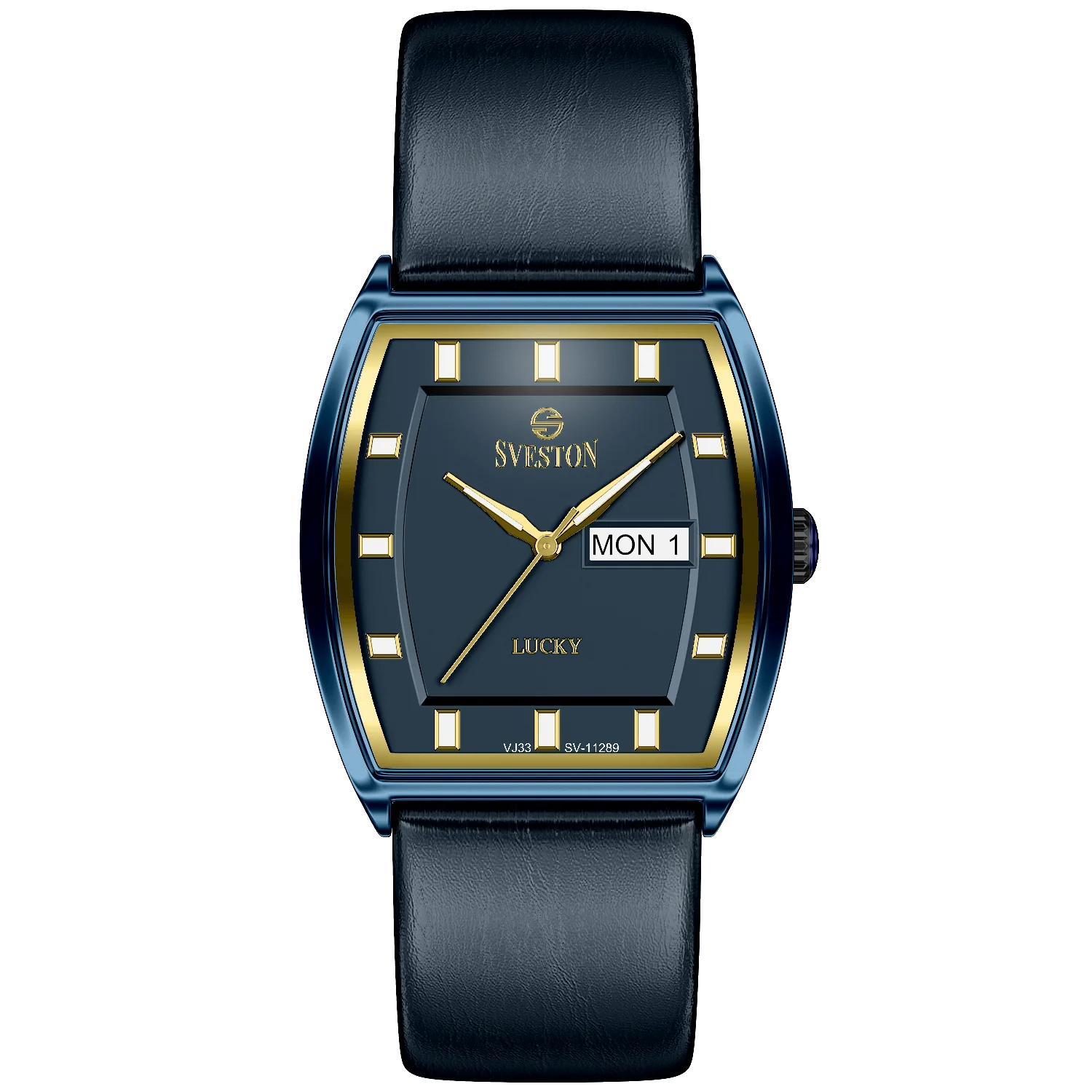 Redefine sophistication with the Sveston Lucky in striking blue and gold. This elegant timepiece features a deep blue dial with gold accents, a stylish rectangular case, and a premium leather strap for ultimate comfort. Equipped with a day-date display and reliable Japanese quartz movement, the Sveston Lucky combines timeless design with modern precision — perfect for every occasion.