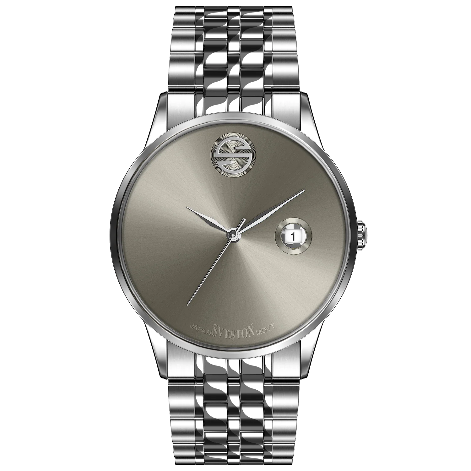 Refined, sleek, and timeless — the Sveston Silver Men’s Watch embodies modern elegance with minimalist charm. Designed for the man who appreciates understated sophistication, this timepiece features a sunburst silver dial with a date window and the signature Sveston emblem, exuding luxury in every detail.