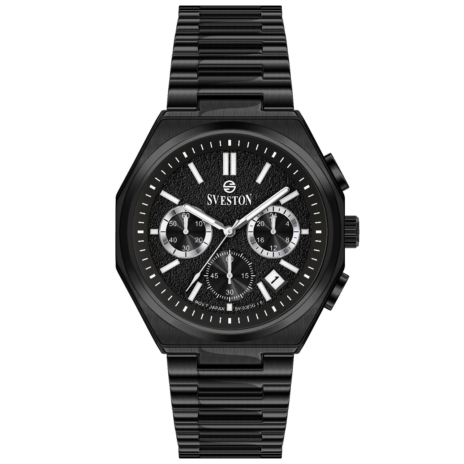 Command attention with the Sveston SV-9383 Chronograph, a timepiece that redefines modern masculinity. Featuring a matte black stainless steel case and bracelet, multi-function chronograph subdials, and a precision Japanese quartz movement, this watch is built for confidence and performance. Whether for work or weekend wear, the Sveston SV-9383 delivers a perfect blend of durability, style, and luxury.